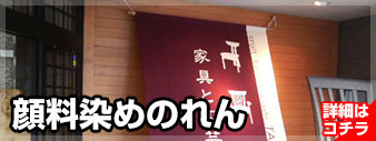 暖簾生地の繊維奥深くにまで染料が行き渡るため 本染めとは違いデザイン作成上の制約がありません。布にたくさん色を染めても、格安価格でお仕立て出来る製法です。