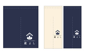 店舗の格式や伝統を重んじたいケースでは、色数を抑え、家紋と店名をシンプルにレイアウトされるのが一般的です。