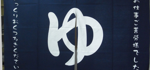 本染めで作成された暖簾は、裏側から見ても名入れされた家紋やロゴを確認する事が出来ます。複雑なデザインには不向きですが、深みのある和色の再現性に定評があります。